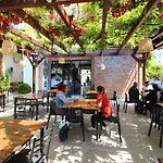 Kahvaltı her sabah restoranda servis edilir. Otelde ayrıca pizza restoranı bulunmaktadır. Tesise 350 metre uzaklıkta Akdeniz yemekleri sunan Pllakat Liku, Like/Creperie gibi çeşitli restoranlar bulunmaktadır.